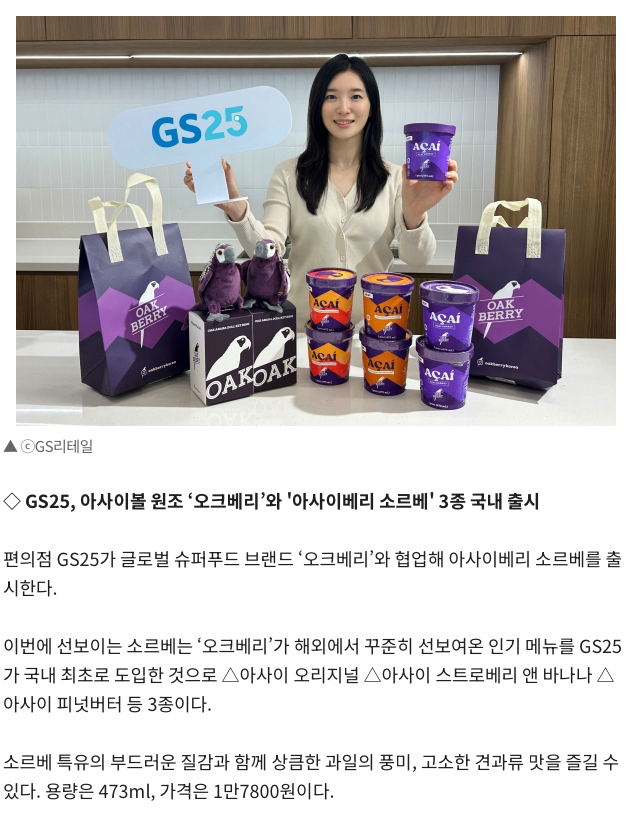 ÆíÀÇÁ¡ GS25°¡ ±Û·Î¹ú ½´ÆÛǪµå ºê·£µå ¡®¿ÀÅ©º£¸®¡¯¿Í Çù¾÷ÇØ ¾Æ»çÀ̺£¸® ¼Ò¸£º£¸¦ Ãâ½ÃÇÑ´Ù.