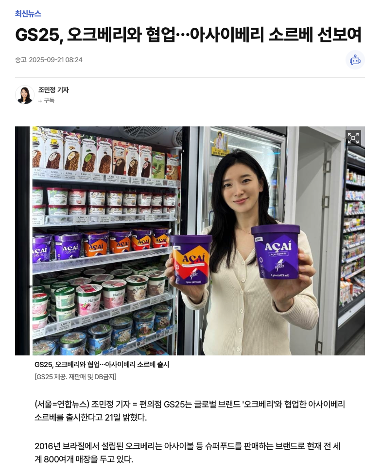 (¼¿ï=¿¬ÇÕ´º½º) Á¶¹ÎÁ¤ ±âÀÚ = ÆíÀÇÁ¡ GS25´Â ±Û·Î¹ú ºê·£µå '¿ÀÅ©º£¸®'¿Í Çù¾÷ÇÑ ¾Æ»çÀ̺£¸® ¼Ò¸£º£¸¦ Ãâ½ÃÇÑ´Ù°í 21ÀÏ ¹àÇû´Ù. 2016³â ºê¶óÁú¿¡¼ ¼³¸³µÈ ¿ÀÅ©º£¸®´Â ¾Æ»çÀ̺¼ µî ½´ÆÛǪµå¸¦ ÆÇ¸ÅÇÏ´Â ºê·£µå·Î ÇöÀç Àü ¼¼°è 800¿©°³ ¸ÅÀåÀ» µÎ°í ÀÖ´Ù. GS25¿¡¼ ÆÇ¸ÅÇÏ´Â ¼Ò¸£º£´Â ¾Æ»çÀÌ ¿À¸®Áö³Î, ¾Æ»çÀÌ ½ºÆ®·Îº£¸®&¹Ù³ª³ª, ¾Æ»çÀÌ ÇdzӹöÅÍ µî 3Á¾ÀÌ´Ù. GS25´Â 25ÀϺÎÅÍ 27ÀϱîÁö '¿ì¸®µ¿³×GS' ¾ÛÀ» ÅëÇØ ǰ¸ñº° 500°³ÀÇ ¿¹¾à ÆÇ¸Å¸¦ ÁøÇàÇÑ µÚ ¿À´Â 11¿ùºÎÅÍ Àü±¹ ¿ÀÇÁ¶óÀÎ ¸ÅÀå¿¡¼ º»°ÝÀûÀÎ ÆÇ¸Å¸¦ ½ÃÀÛÇÒ °èȹÀÌ´Ù. ¾ç»ç´Â À̹ø »óǰÀÌ ½´ÆÛǪµå¿Í Æ®·»µðÇÑ µðÀúÆ®¸¦ ã´Â ¼ÒºñÀڵ鿡°Ô Å« È£ÀÀÀ» ¾òÀ» °ÍÀ¸·Î ±â´ëÇϰí ÀÖÀ¸¸ç, ¿ÀÅ©º£¸®ÀÇ Àα⠻óǰÀ» Ãß°¡ Ãâ½ÃÇÏ°í ´Ù¾çÇÑ Çù¾÷ »óǰµµ ¼øÂ÷ÀûÀ¸·Î È®´ëÇØ ³ª°¥ °èȹÀÌ´Ù.