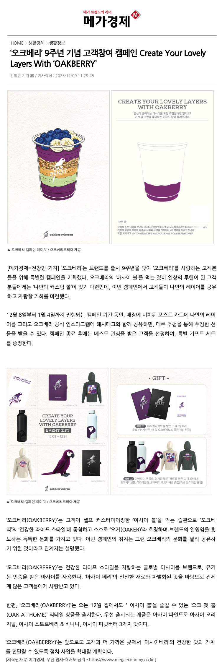 ¡®¿ÀÅ©º£¸®¡¯ ºê·£µå 9Áֳ⠱â³ä °í°´Âü¿© Ä·ÆäÀÎ Create Your Lovely Layers With ¡®OAKBERRY¡¯