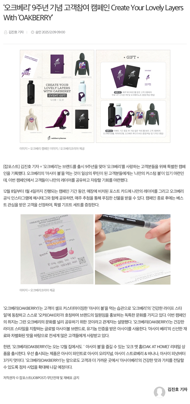 ¡®¿ÀÅ©º£¸®¡¯ ºê·£µå 9Áֳ⠱â³ä °í°´Âü¿© Ä·ÆäÀÎ Create Your Lovely Layers With ¡®OAKBERRY¡¯
